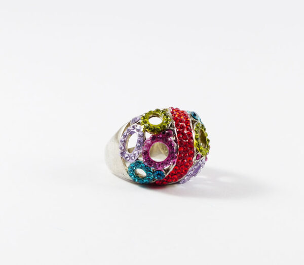 El Anillo Rainbow es una explosión de color y estilo. Diseñado para mujeres que aman expresarse a través de los accesorios, esta pieza statement está elaborada en aleación de metales con incrustaciones de cristales multicolor, logrando un efecto vibrante, moderno y lleno de energía.